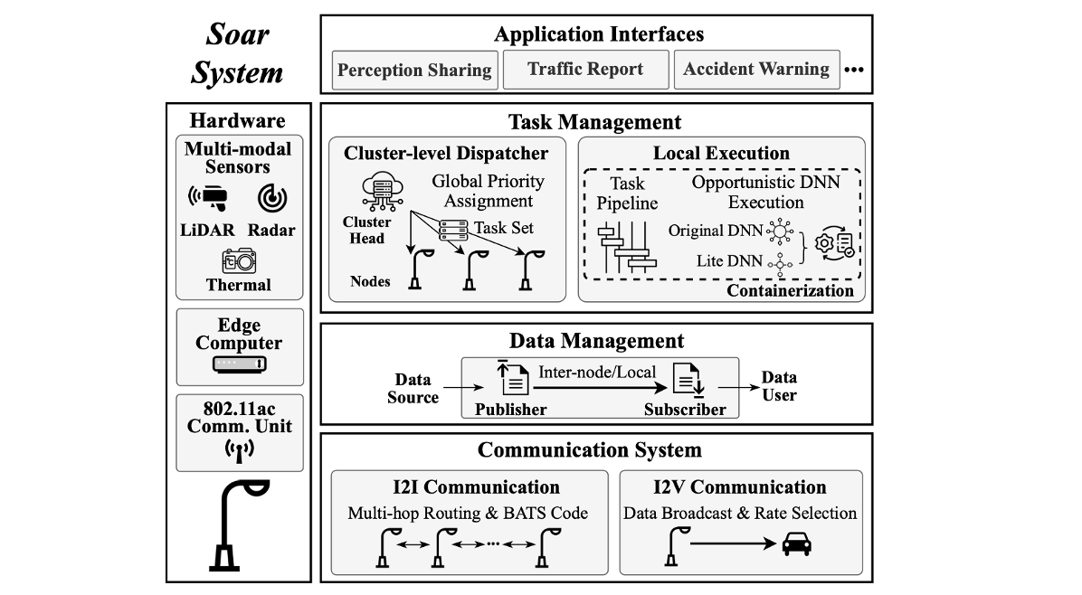My research builds intelligent infrastructures that enhance how mobile systems perceive, learn, and adapt to the physical world. I explore how stationary infrastructure nodes (e.g., smart roadside lampposts or indoor sensing units), mobile devices (e.g., autonomous vehicles, AR glasses, and indoor robots), and edge servers jointly develop collective perception and intelligence under constraints of compute, bandwidth, latency, and energy through system-level co-design of sensing, networking, and machine learning.